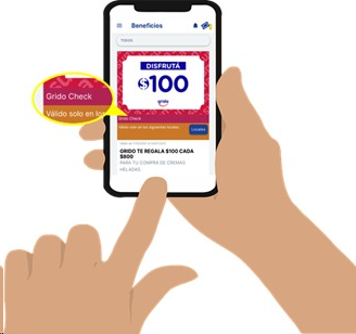 El cupón Grido Check se aplica al momento del cobro, en el panel del vuelto.
