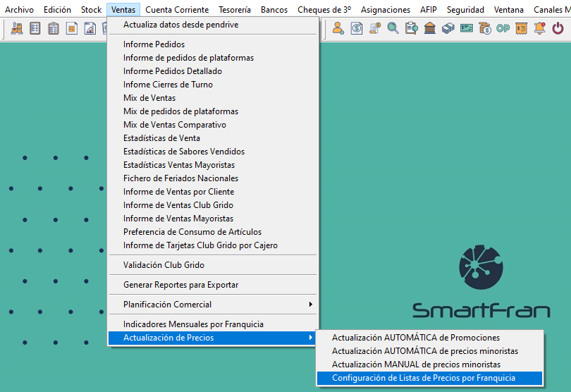 Recordá sincronizar desde SmartFran POS una vez realizada la actualización de precios, para que se visualicen los cambios.