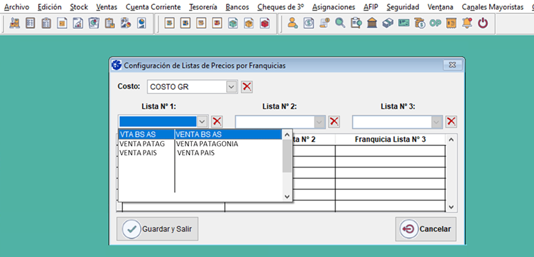 - Ingresá a Menú Ventas / Actualización de Precios / Configuración de lista de Precios