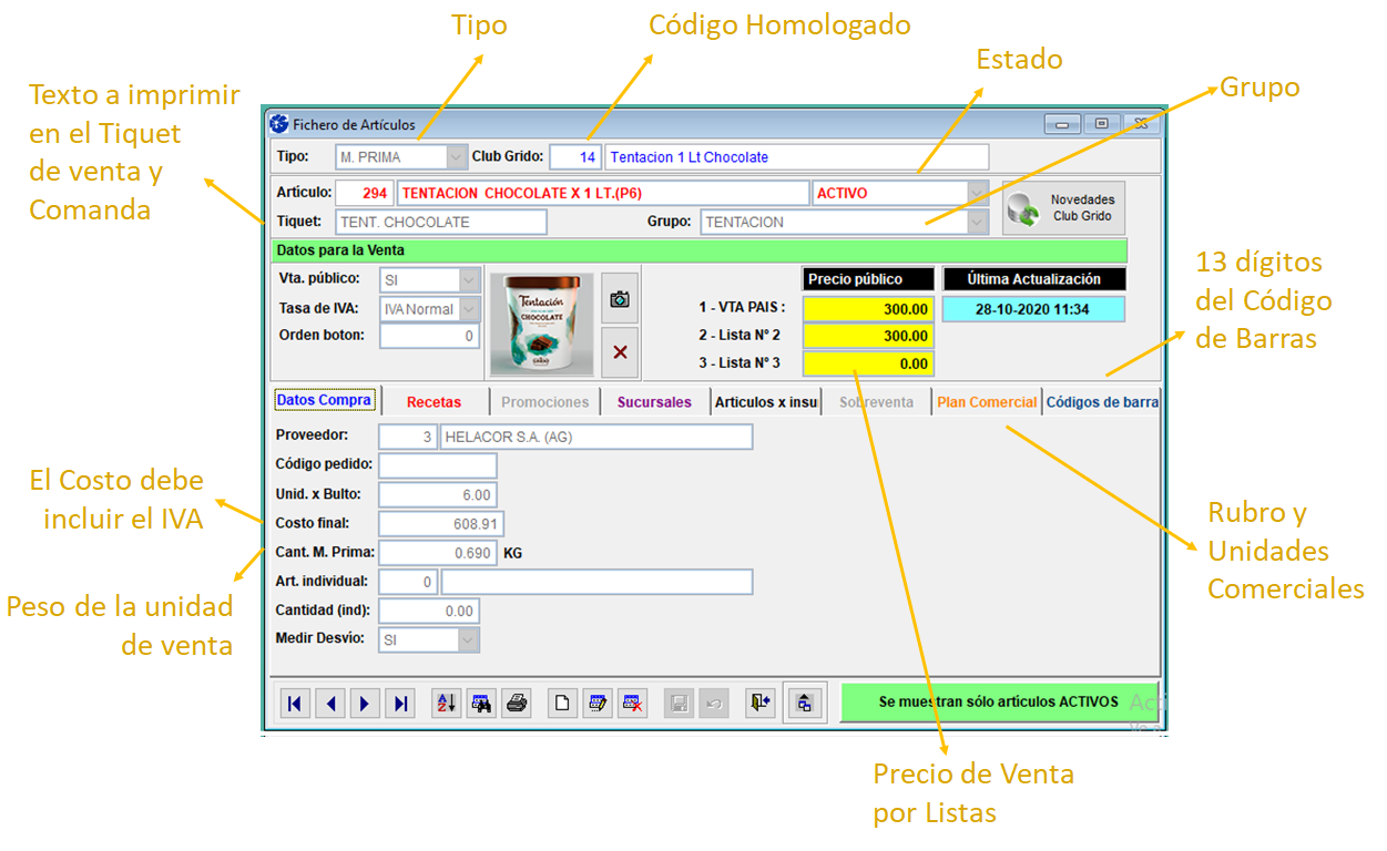 Si usted posee del código de Barras, puede cargarlo en su Fichero de Artículo para vender este artículo escaneándolo desde SF POS (Punto de Ventas).