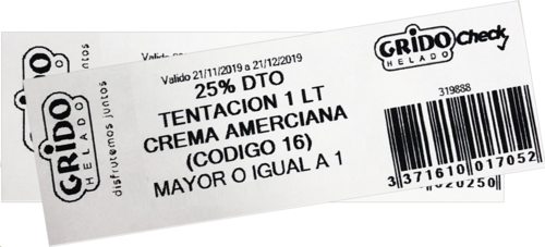 Al finalizar la venta, se imprimirá por su comandera, Cupones Grido Check, con beneficios para los clientes.